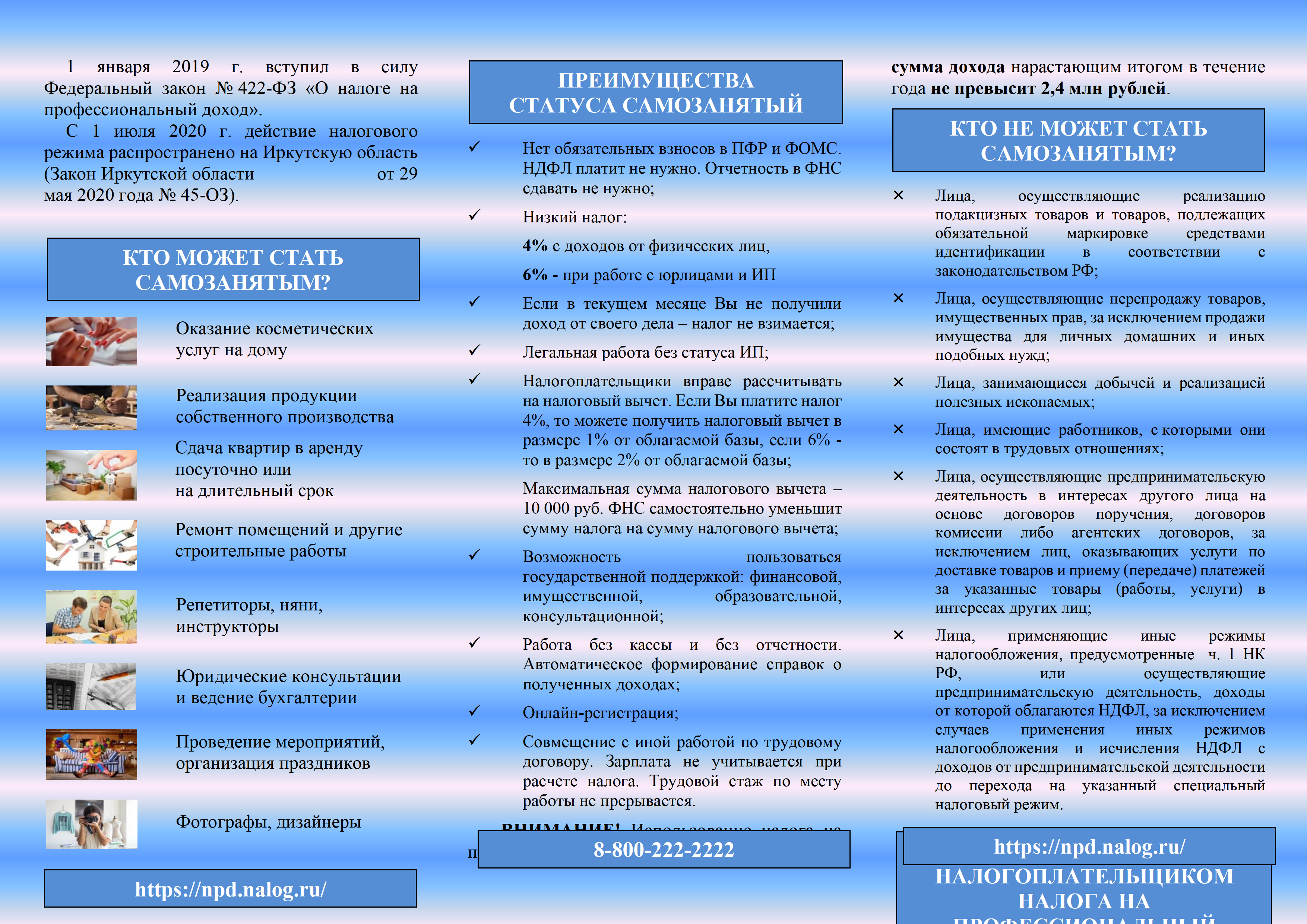 1 января 2019 г. вступил в силу Федеральный закон № 422-ФЗ «О налоге на профессиональный доход».