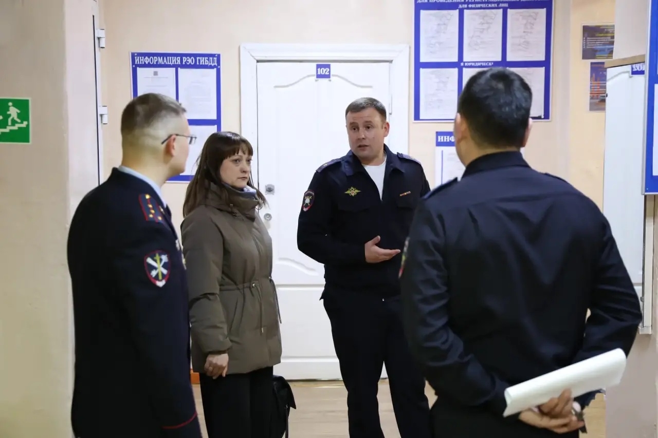 Заместитель председателя Общественного совета при МО МВД России «Черемховский» Ирина Паутова вместе с начальником отдела информации и общественных связей Главного управления МВД России по Иркутской области капитаном внутренней службы Александром Сверловым посетили экзаменационно-регистрационное подразделение ГИБДД Межмуниципального отдела МВД России «Черемховский».